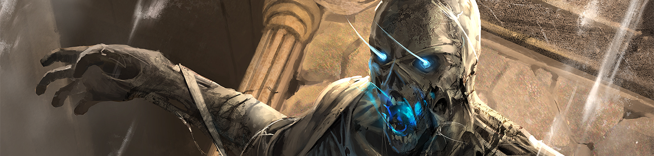 Puede que algunos jugadores ya hayan podido echarle un vistazo a esta carta, gracias a las piezas de rompecabezas que se han ido publicando en las páginas de Twitter de @Sparkypants y @TESLegends. ¡Para el resto, nos complace presentaros Momia descomunal!